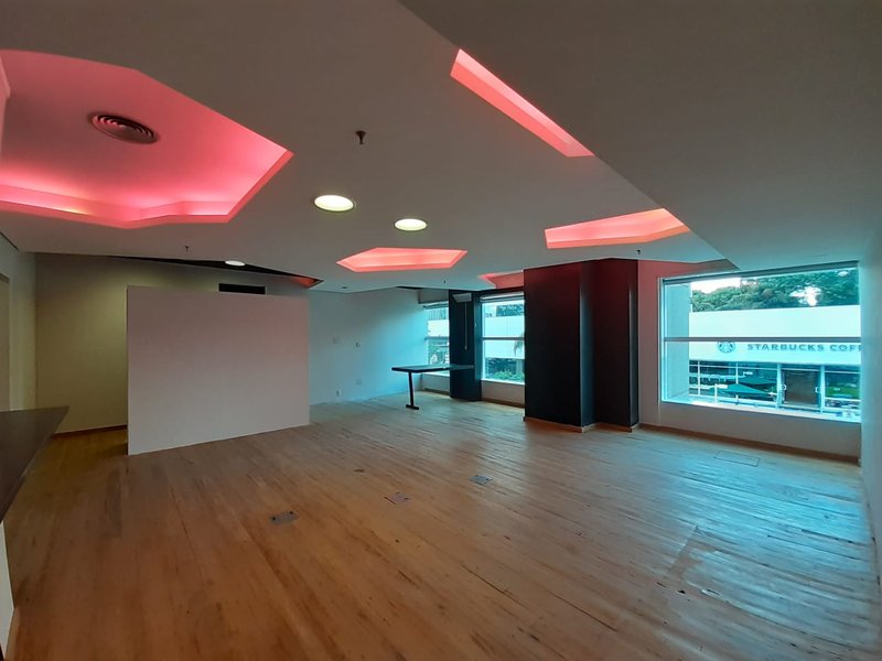 Área de 4.254,15m² para escritório completa com piso elevado, forro, iluminação, ar condicionado, banheiros, sistema de combate a incêndio e gerador. O espaço conta do divisões internas.