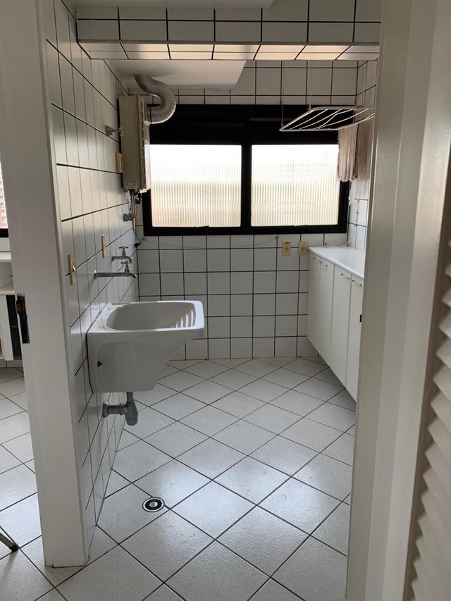 O imóvel fica em andar alto, oferece conforto como ar-condicionado, área de serviço, armários planejados (banheiro, cozinha e quarto), closet, lavabo e alarme.