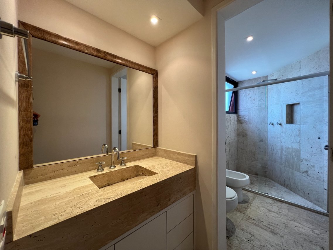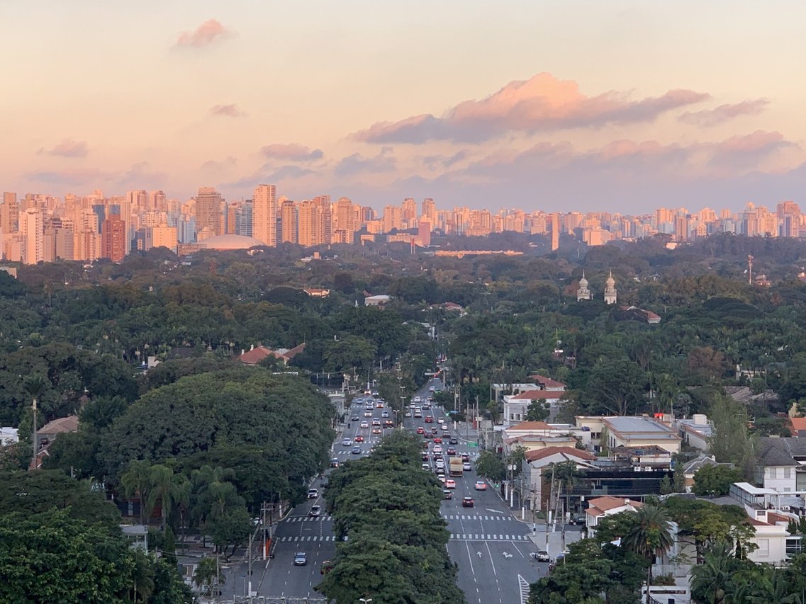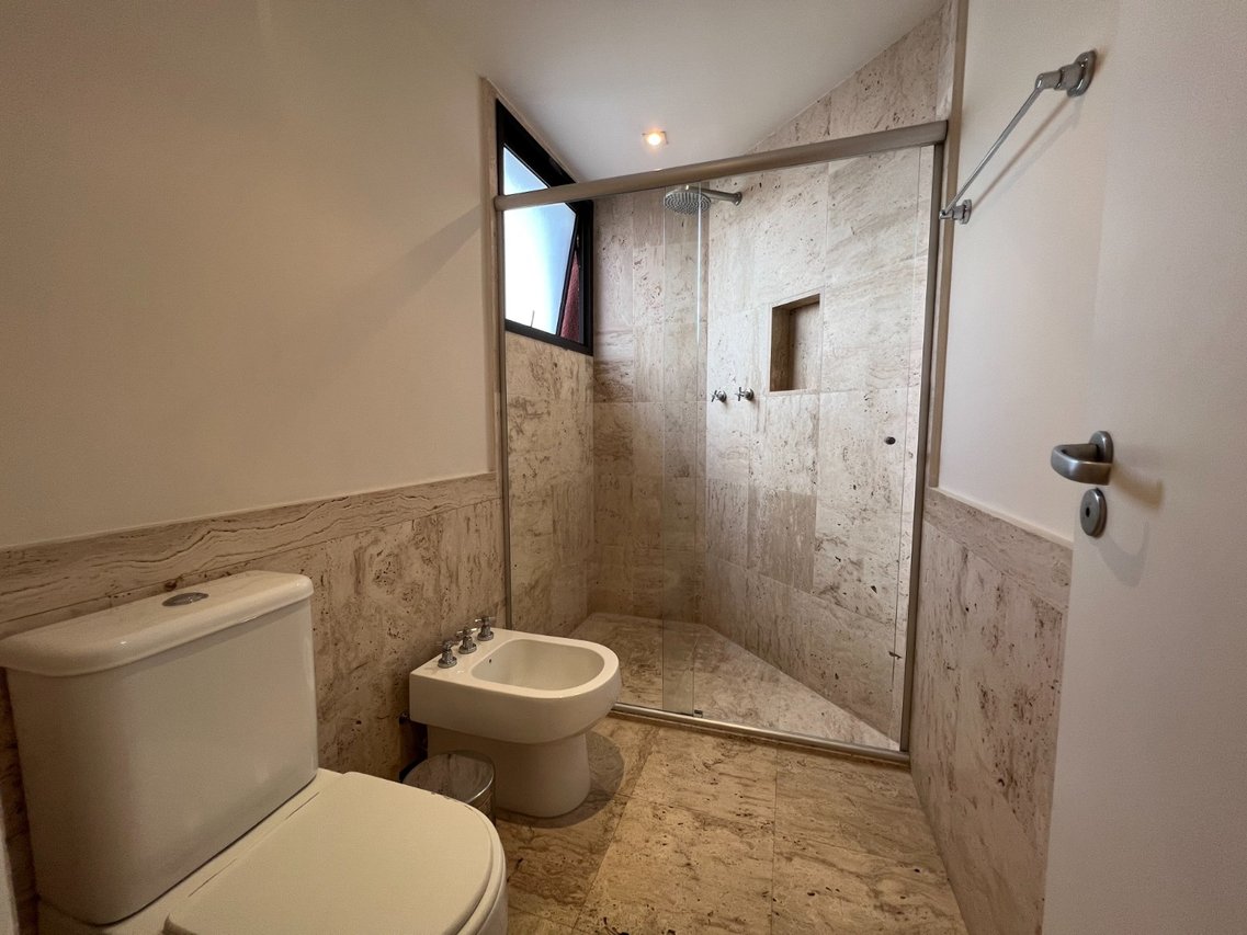 Ambos os andares contam com vista eterna para os Jardins estendendo até o Parque Ibirapuera, com janelões de chão ao teto. Banheiro revestido em mármore travertino.