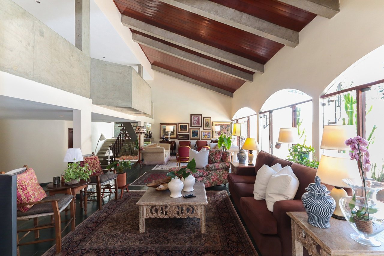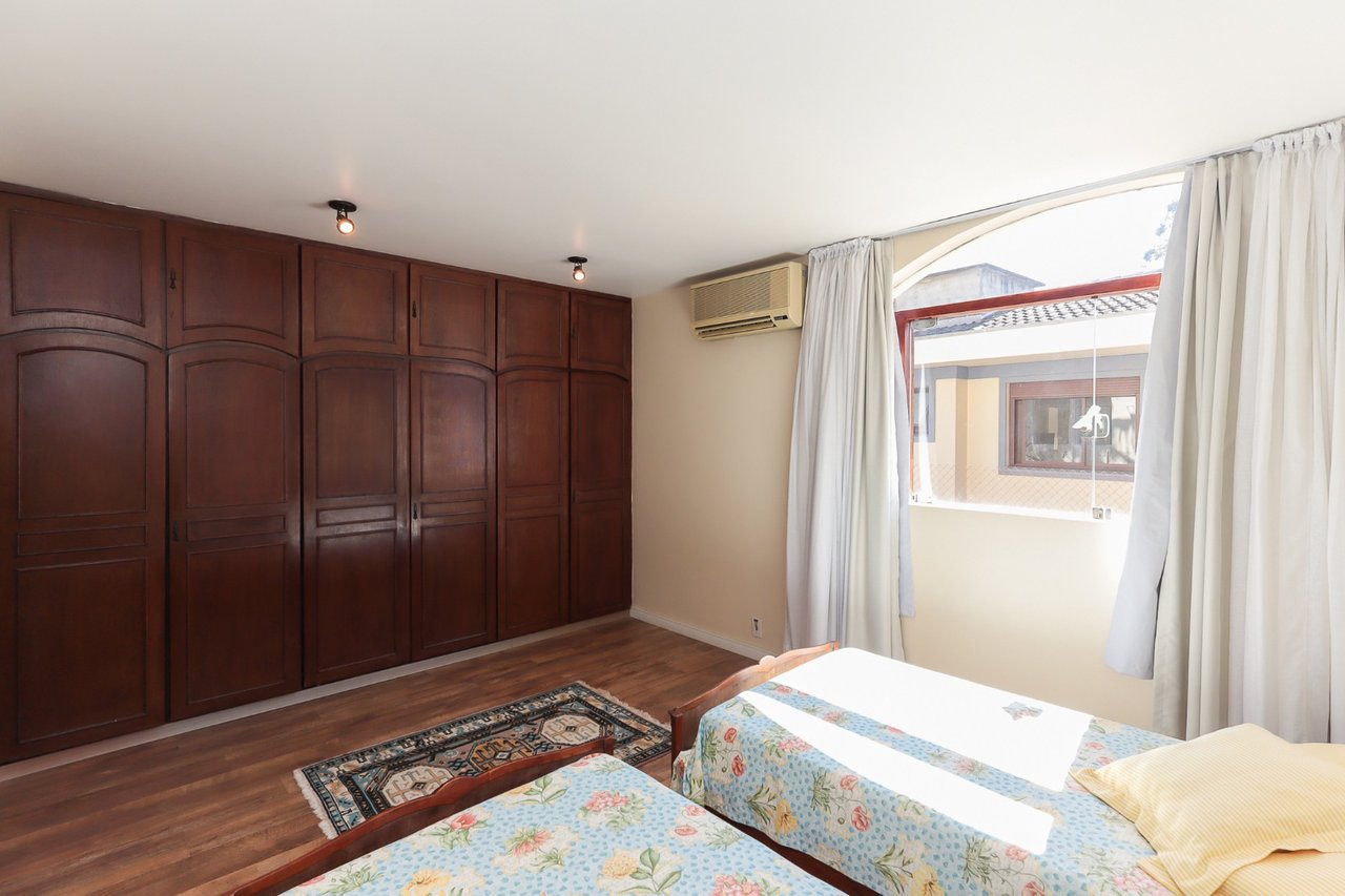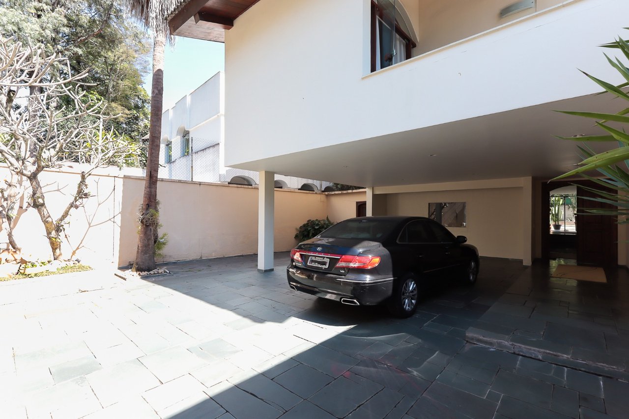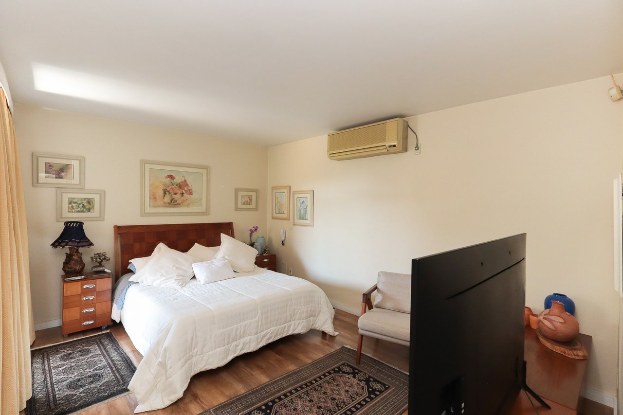 - Duas suítes completas e três dormitórios, sala de almoço e jantar, cozinha, living para dois ambientes com sala de televisão, escritório, lavabo e ampla área de serviço com departamento para funcionário(a)
