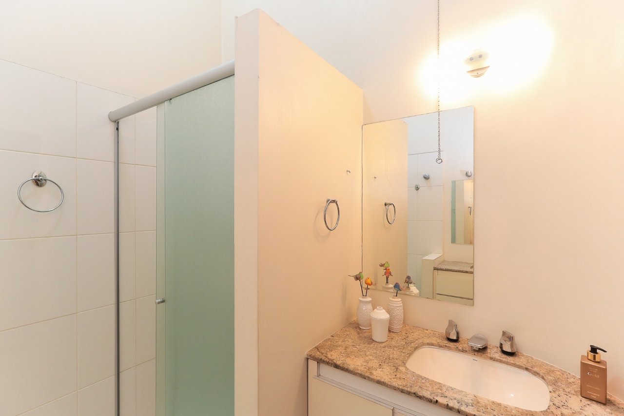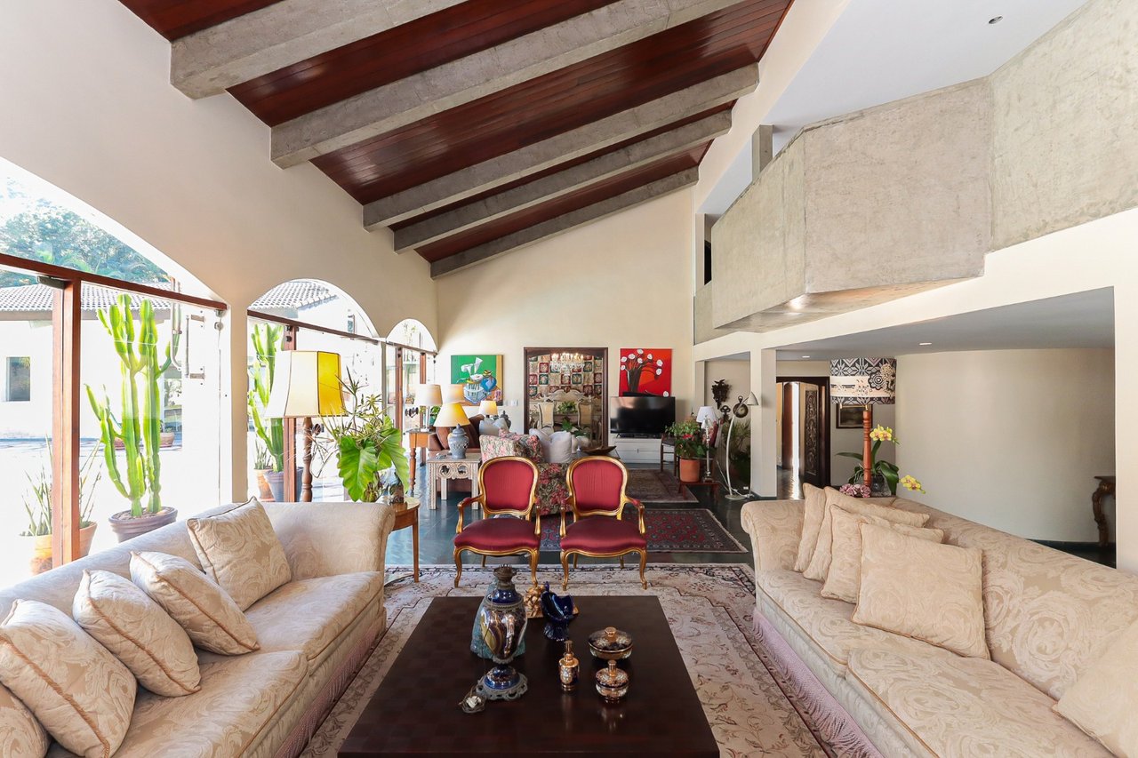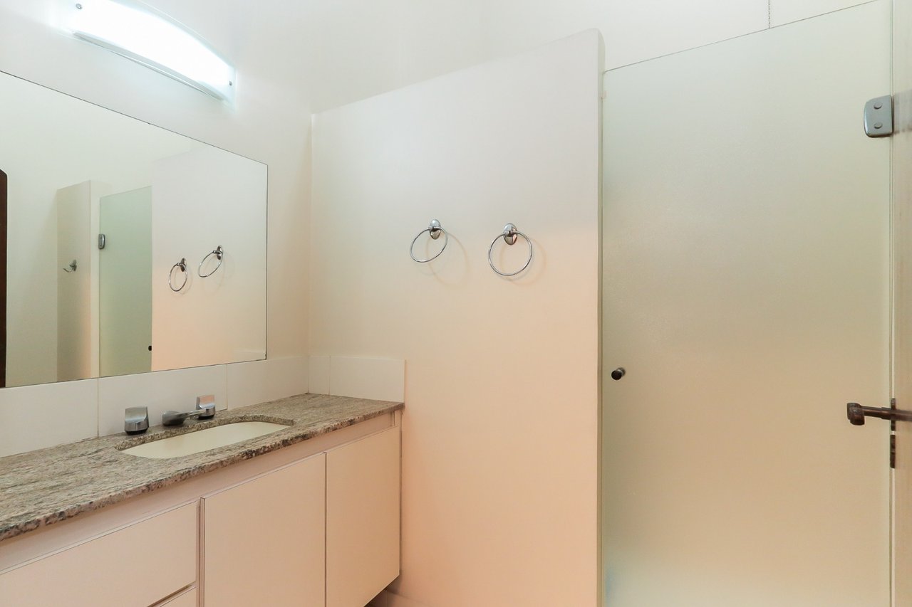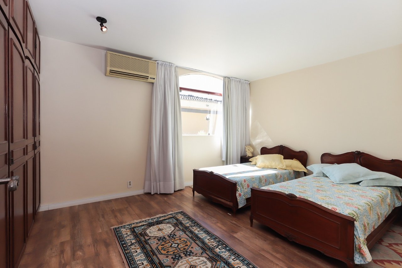 - Duas suítes completas e três dormitórios, sala de almoço e jantar, cozinha, living para dois ambientes com sala de televisão, escritório, lavabo e ampla área de serviço com departamento para funcionário(a)